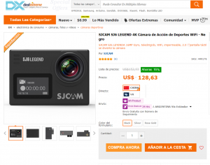 Seleccioná tu producto en DX.com (por ahora sólo disponible para productos limitados, principalmente: celulares, tablets, impresoras 3D, drones, relojes, entre otros).
